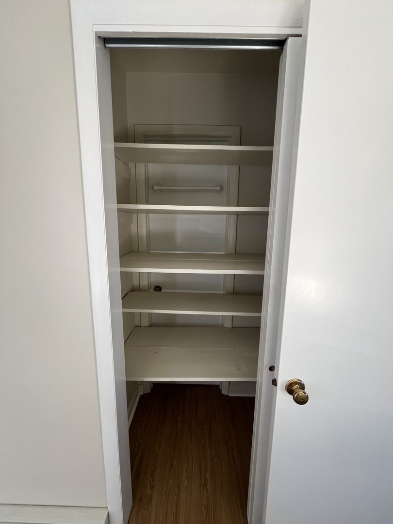 • Primary bedroom on the second floor with large closets, shelving, and a private bathroom