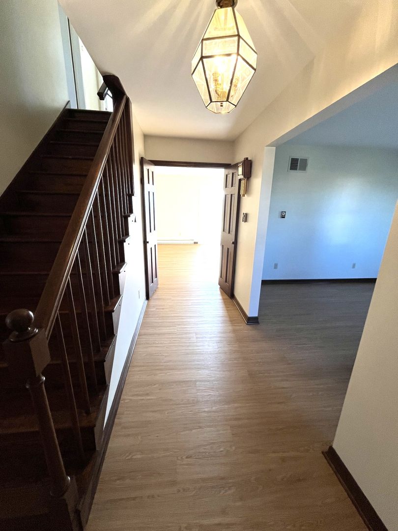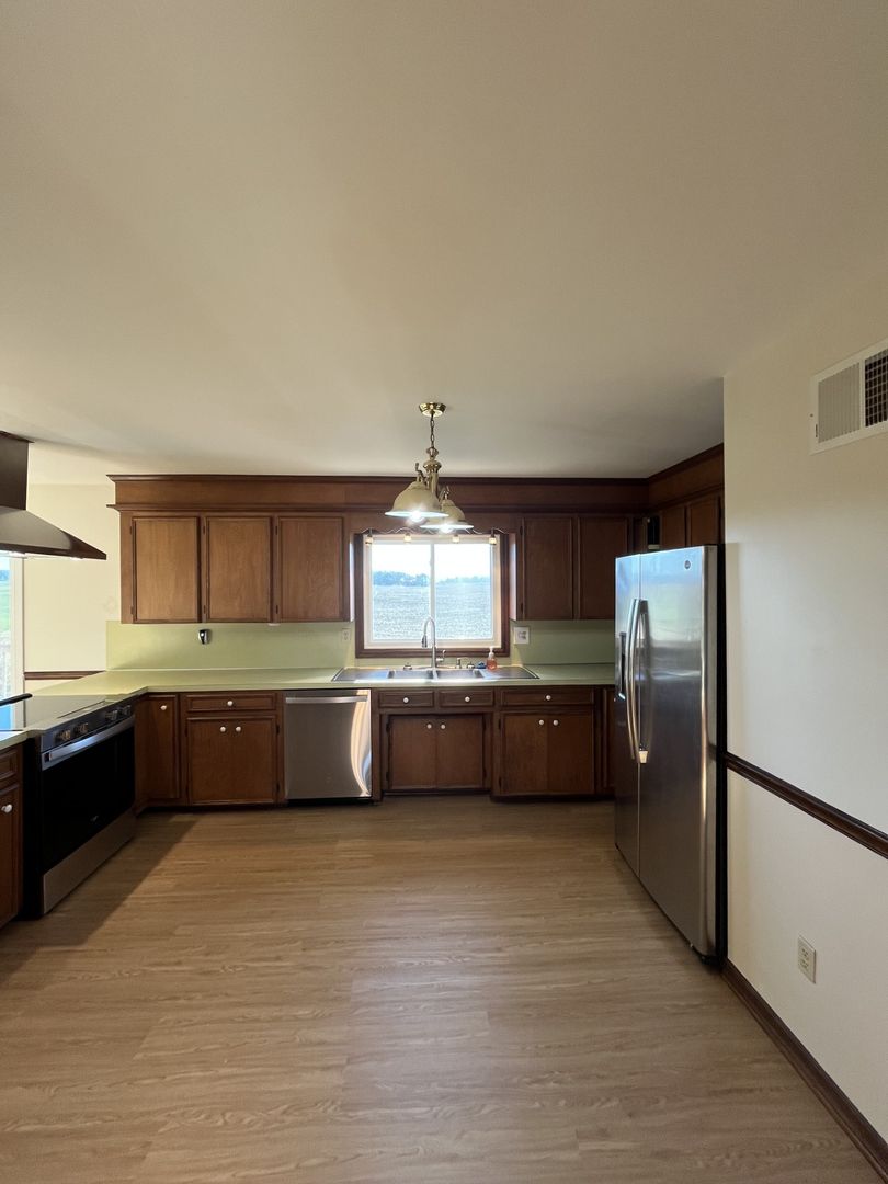 • Large kitchen with ample cabinetry, dining space, and a beautiful chandelier