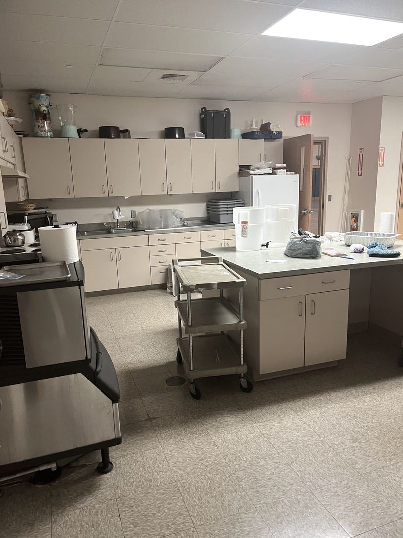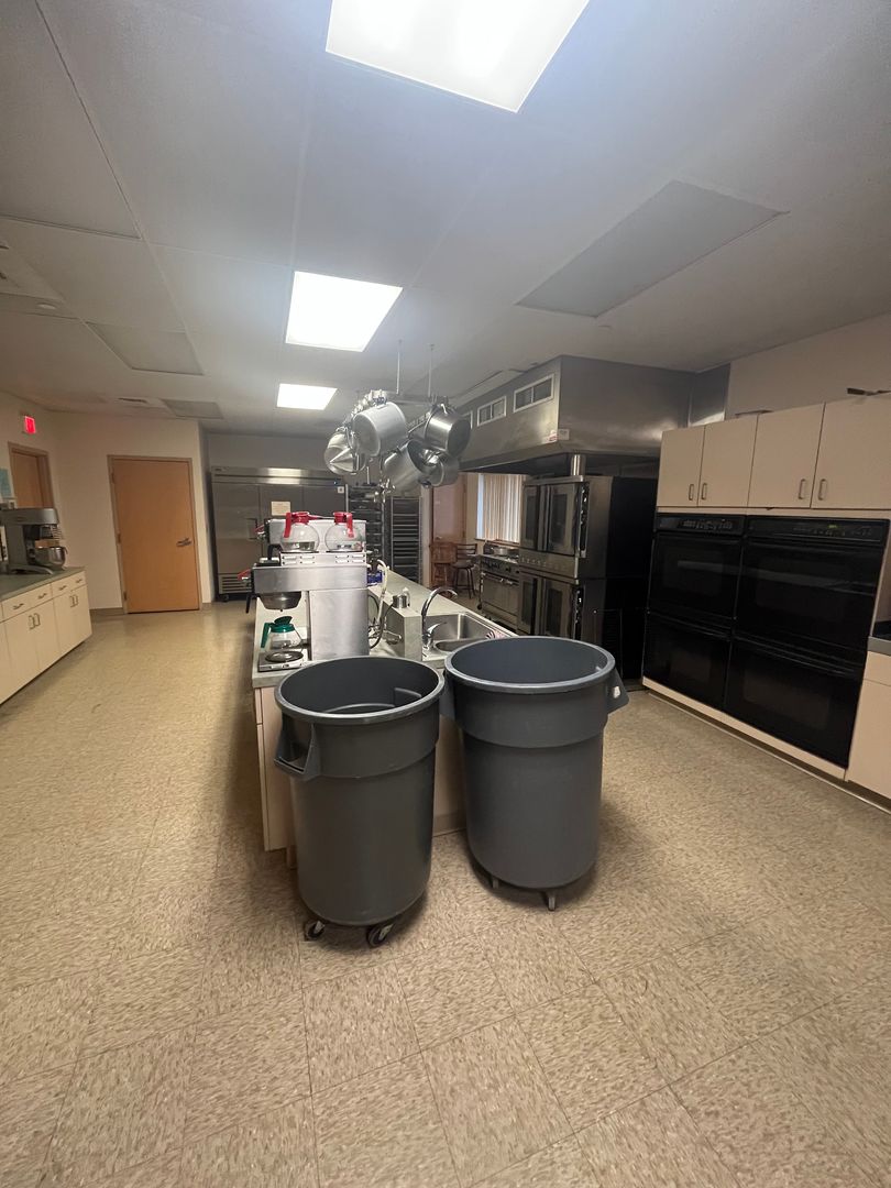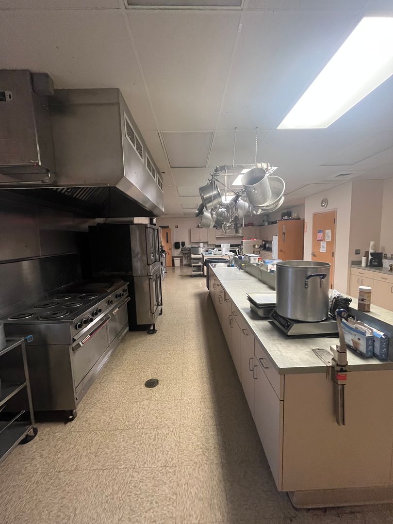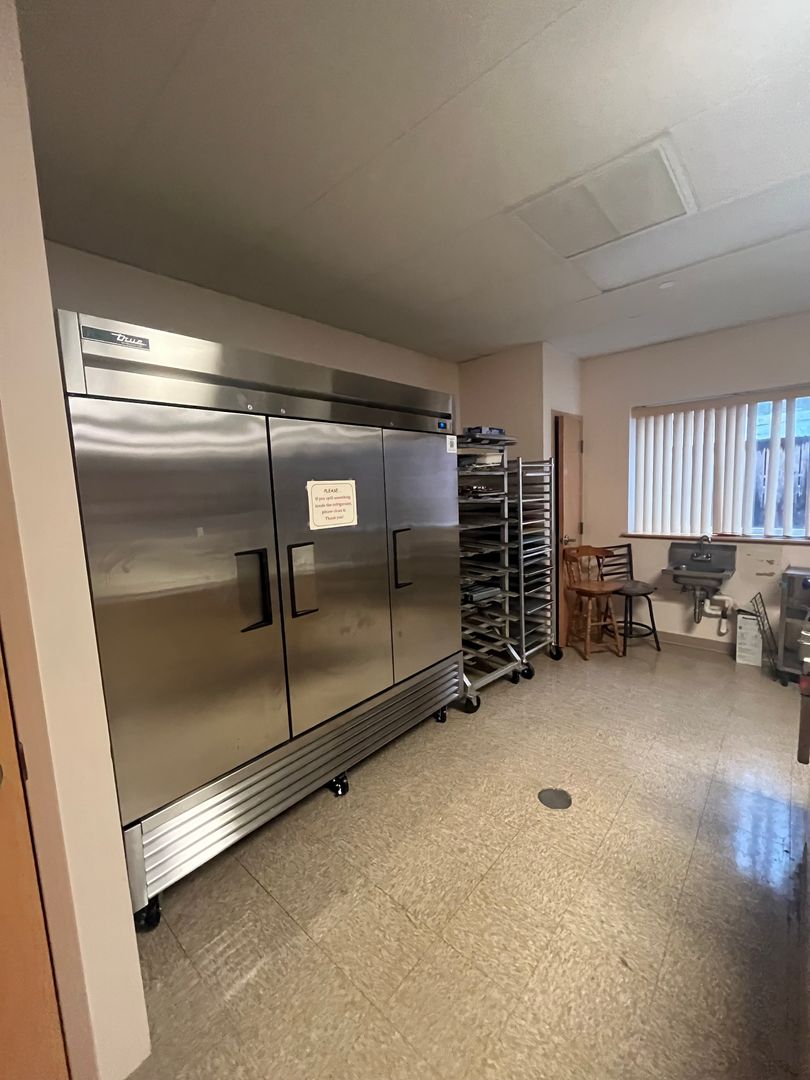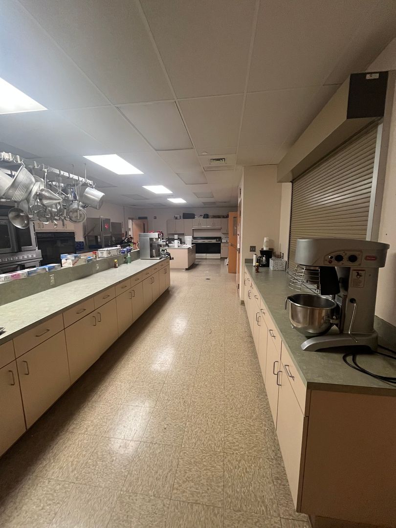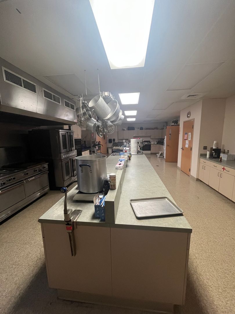 • Commercial kitchen with appliances and supplies available for tenant use (tenant responsible for cleaning and maintenance after use)