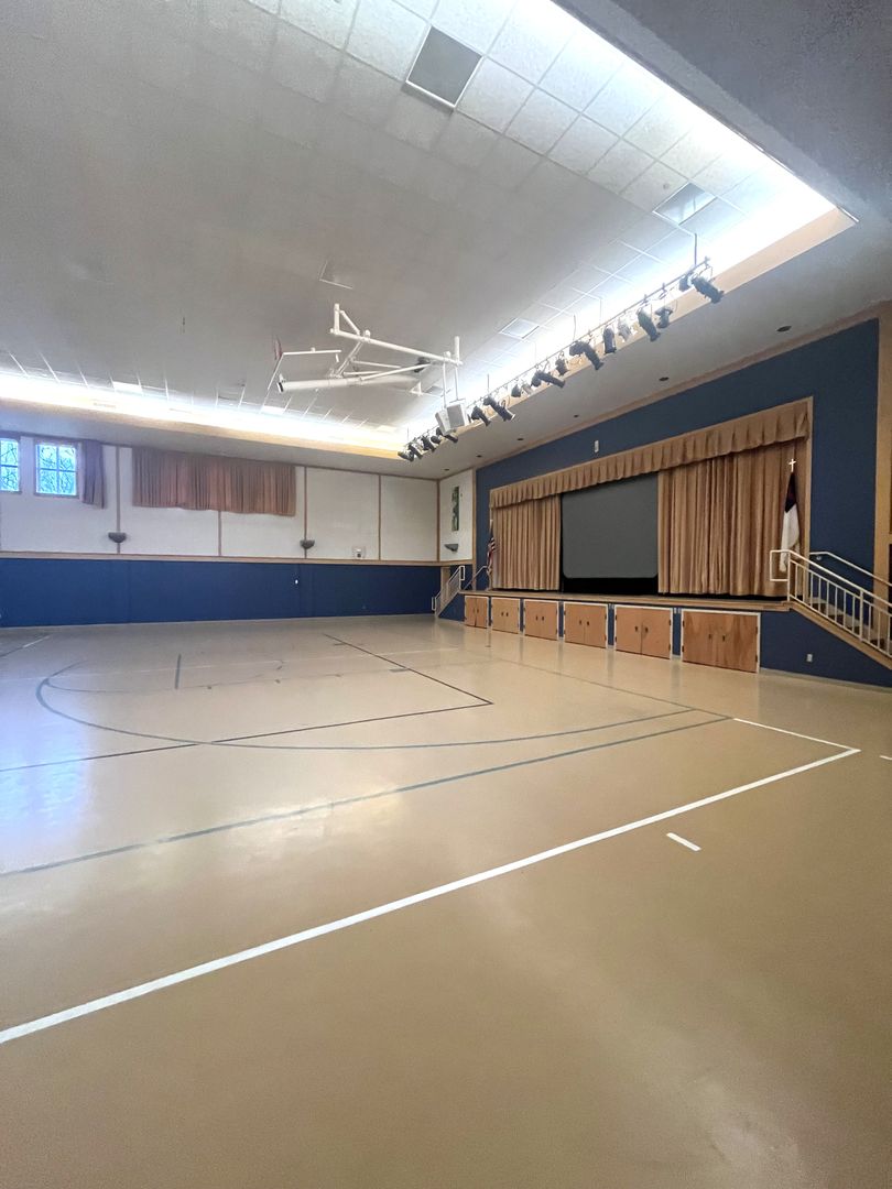• Gymnasium with basketball hoop