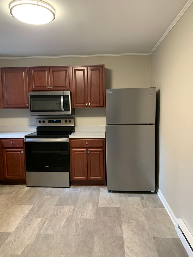 Two-story, 2 bed/1 bath townhouse with new flooring and fresh paint throughout and new stainless steel appliances!! Ground floor includes kitchen equipped with electric range/oven, microwave and refrigerator, dining room and living room. Second floor includes 2 bedrooms and full bath. Washer/dryer hook-ups in unfinished basement. Front and back porch. Electric baseboard heat. No Central air. Tenant responsible for all utilities and snow/ice removal. Landlord provides lawn care. 3 occupant maximum. Pets not permitted. No smoking. Must meet minimum credit score requirement of 650 or higher for consideration. Does not accept subsidized housing.
